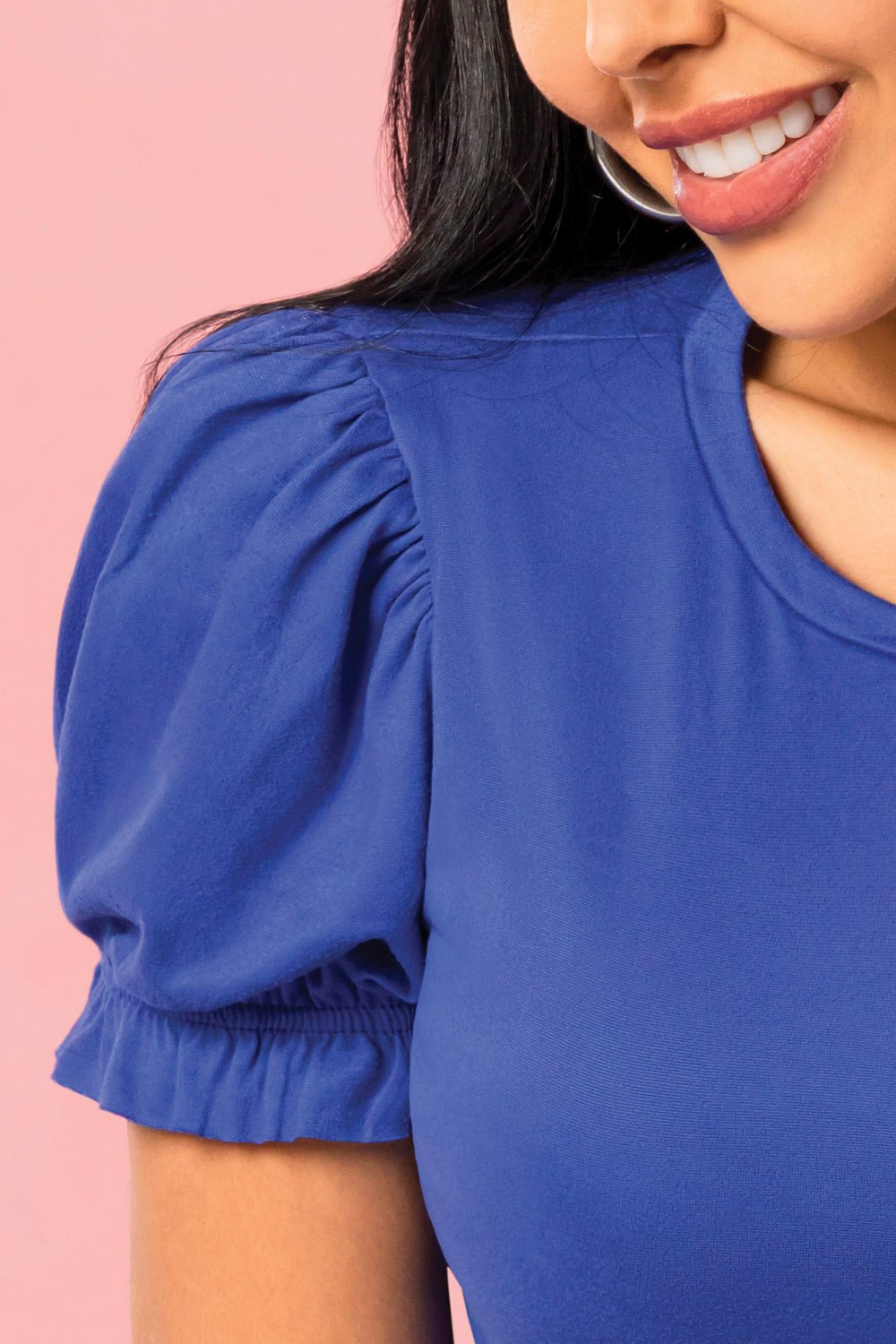 Blusa en tejido de punto stretch con detalle en manga, color azul rey. Ref 3201085P10