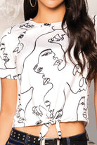 Blusa en téjido de punto stretch estampado anudada en frente. Ref 3201114P01