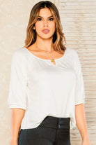 Blusa en rayón viscosa stretch con detalle de herraje en escote. Ref 320142P01