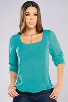 Blusa en tejido plano con mangas 3/4 y escote redondo, color aqua.