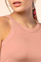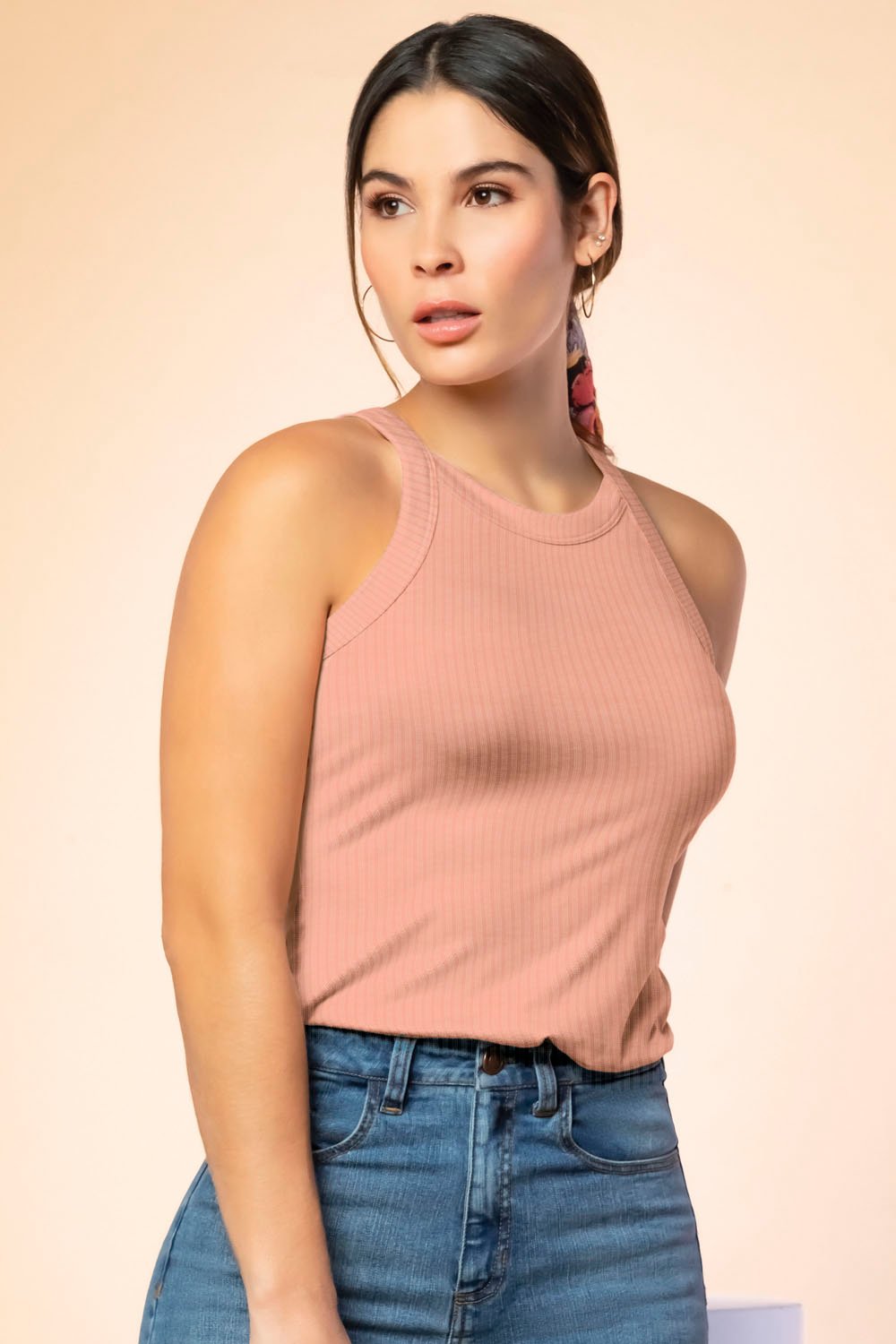 Blusa tipo halter en tela rib stretch, un básico infaltable en tu armario. Su ajuste al cuerpo realza tu silueta, mientras que la textura acanalada le aporta un toque moderno.