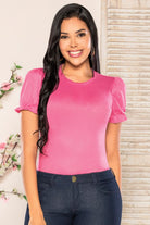 Blusa en tejido de punto stretch con detalle en manga, color rosado. Ref 3201085P08
