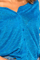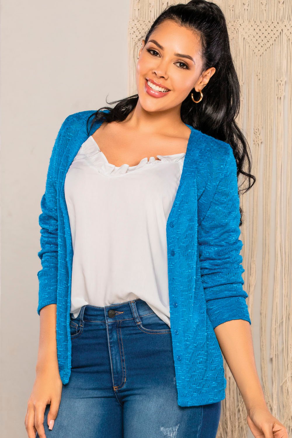 Blusa manga 3/4 en tejido de punto con efecto color turquesa, un básico moderno para tu guardarropa. Combínala con faldas, pantalones o jeans para un look perfecto.